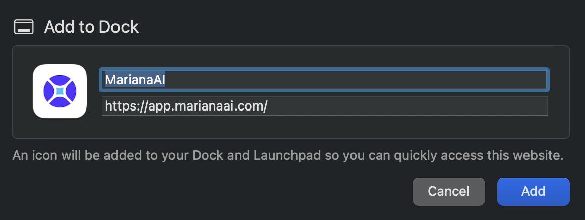 4. You can now access MarianaAI from your Dock and Launchpad.<br>